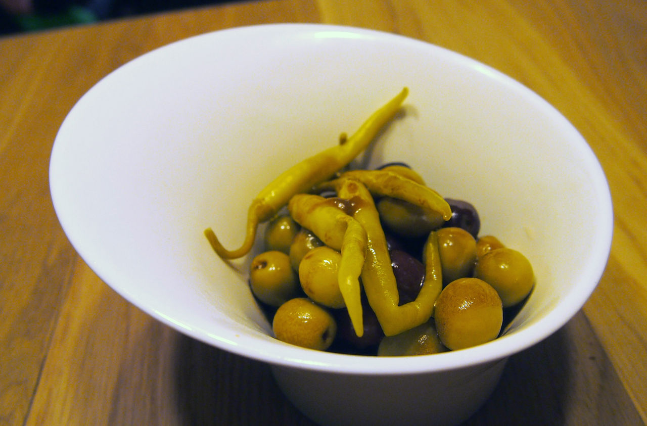箸休め的な感じでオリーブと青唐辛子の盛り合わせを