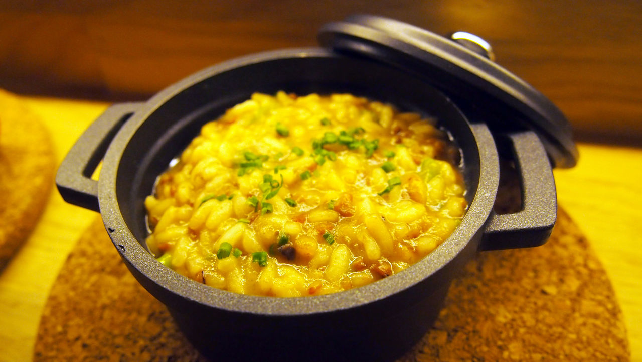 ココットに入って出されるリゾット、この日はイカのリゾットを頼みました。