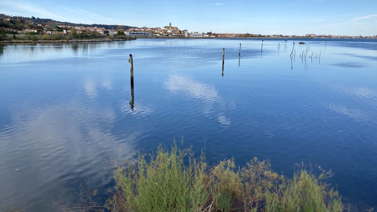 放牧されている羊や水辺の野鳥たち、サン・セバスティアン空港から飛び立つ旅客機など